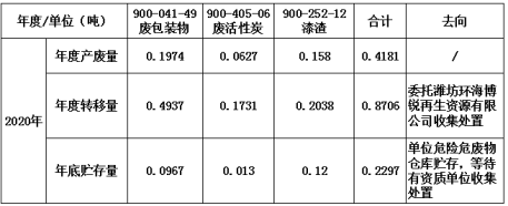 2020年度产废及转移信息: